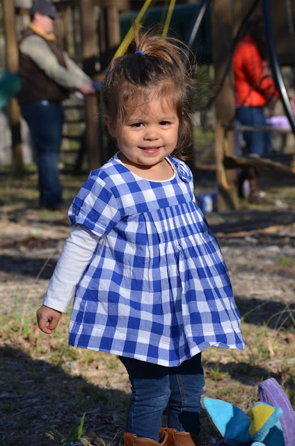 After the eggs were all picked up from obvious view found - it was time for the kiddos to test out that playground they saw on the way in...