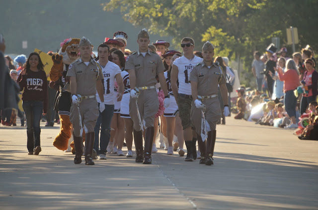 And then it began. And when they said that the parade was a BIG deal - they meant it. Buglers from the Fightin' Texas Aggie Band lead step off. Followed by the A&M Consolidated HS football team, cheerleaders, Belles, baseball team, and Spirit Squad.
