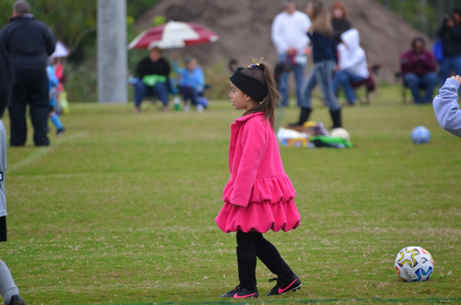 And while I was so happy to see our Shark Fish play so well, this sweet girl was my favorite part of the game. She was cold. And tired. And really wanted to play with this pink coat in.